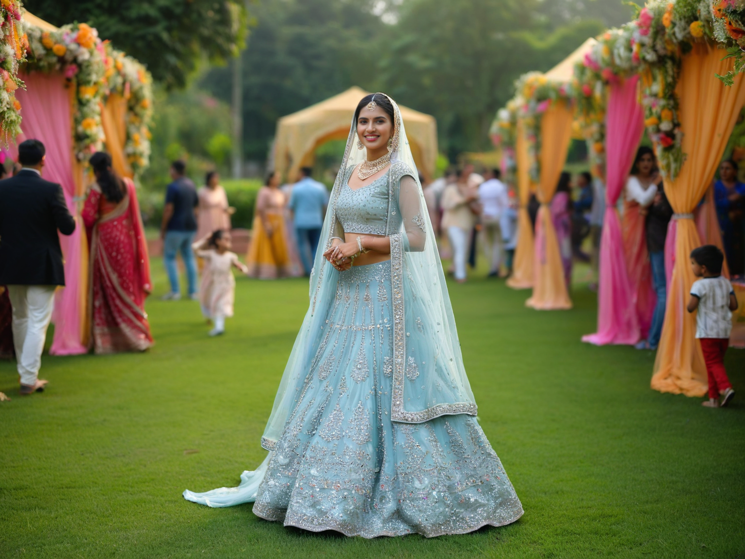 Each bridal ensemble is thoughtfully designed and handcrafted in India, combining traditional artistry with modern elegance. We accept a limited number of commissions to ensure exceptional craftsmanship and personal attention.